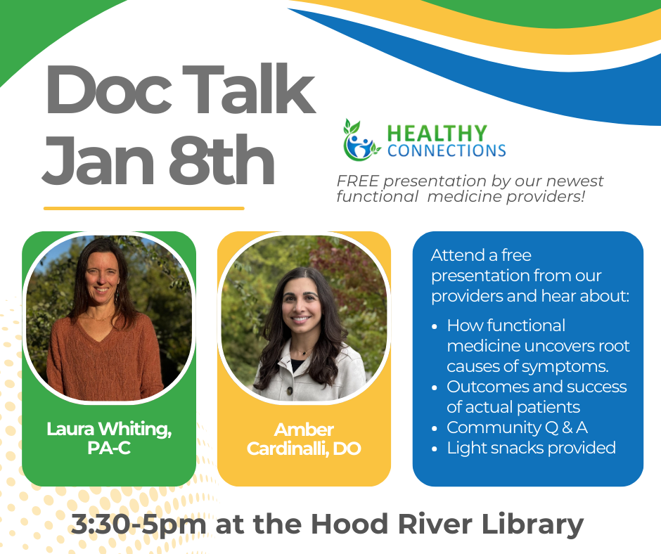 Now is the time to take charge of your health. Functional medicine empowers you to understand the “why” behind your symptoms, prevent disease before it starts, and create lasting changes that support your body, mind, and energy. We invite you to schedule a discovery call with our team and see how Healthy Connections in Hood River can help you take control of your health and transform your life.
